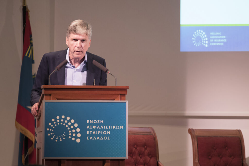 Το συνεδριακό μέρος ξεκίνησε με την άκρως ενδιαφέρουσα παρουσίαση του κ. Davide Corradi, Managing Director & Senior Partner, Insurance leader for Central Europe, Eastern Europe, Middle East and Africa, από την Boston Consulting Group και ολοκληρώθηκε με ζωντανή συζήτηση, με συντονιστή τον κ. Νικόλαο Βέττα Γενικό Διευθυντή του Ιδρύματος Οικονομικών & Βιομηχανικών Ερευνών και συμμετέχοντες τον κ. Corradi και τους κ.κ. : Κυριάκο Αποστολίδη (Πρόεδρο και Διευθύνοντα Σύμβουλο της, Metlife Greece), Arnaud Kopp (Client Manager for the Mediterranean countries, Swiss RE), Φιλίππα Μιχάλη (Διευθύνουσα Σύμβουλο Allianz Ελλάδος), Andreas Voßberg (Senior Underwriter Property Treaty, Munich RE) και Giuseppe Zorgno (Country Manager, AIG Europe S.A., Greece branch).